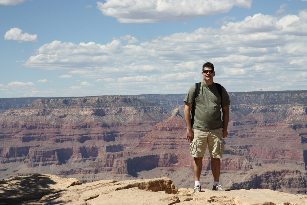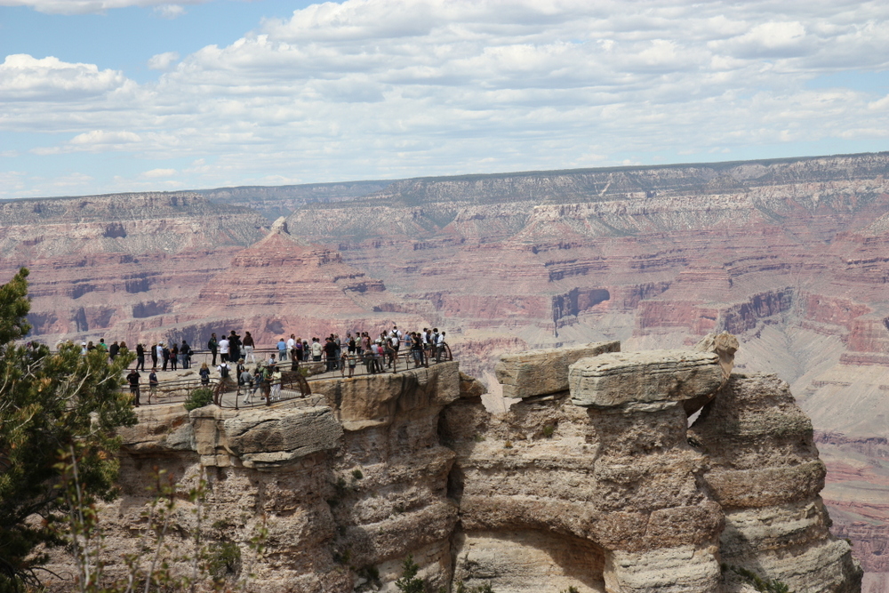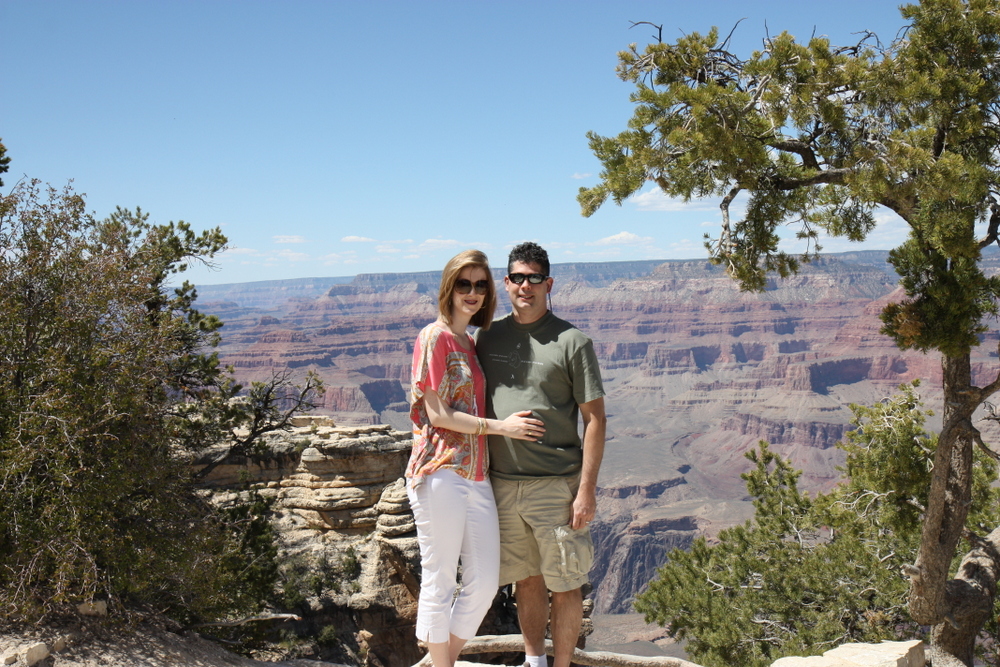 First, we actually went to the lookout points — which are areas that jut out along the rim and have rails. We jockeyed with all of the tourists and could never get a photo without someone else in it.
