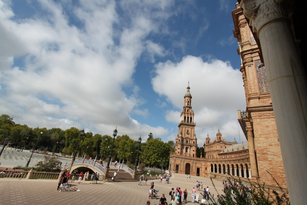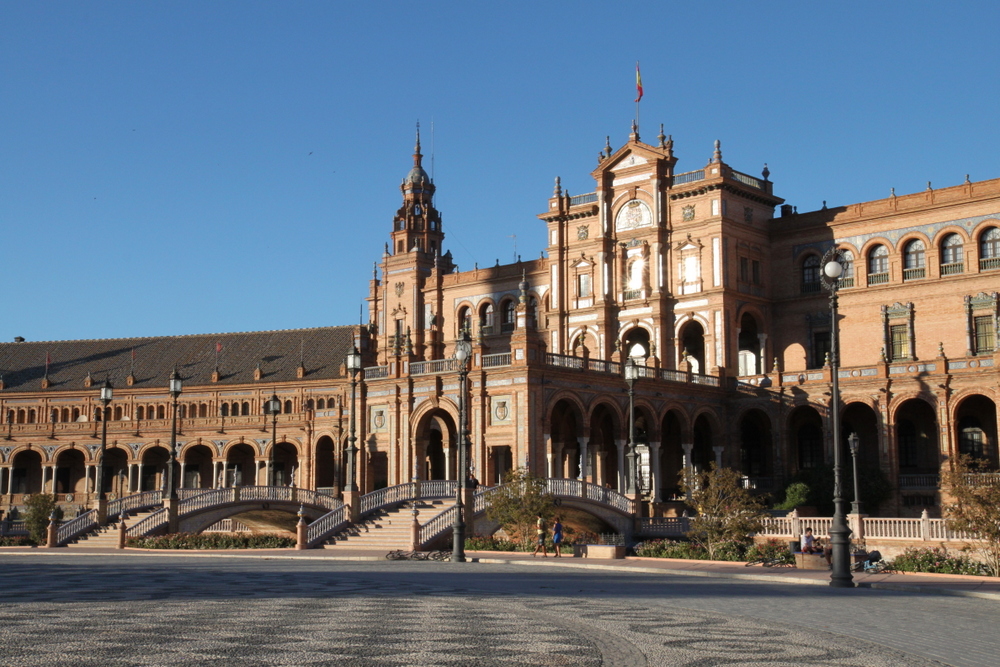 I had this place on my list to visit, but wasn’t sure if we’d make it there. We ended up meandering through the María Luisa Park and passed through Plaza de España the night before on our carriage ride. It looked so beautiful, that I knew I wanted to come back and spend more time. So, it was stop number one for us. It was built in 1928 for the Ibero-American Exposition of 1929. (Also, interesting note, this is what’s used for Aladeen’s palace in the movie The Dictator. They CGI’ed some things in, but this is it!)