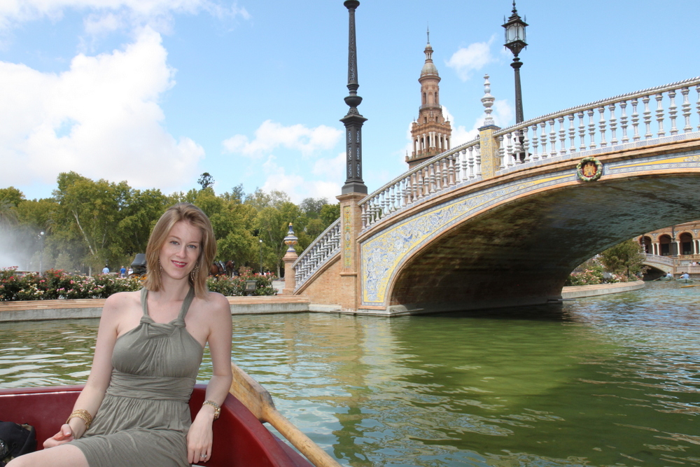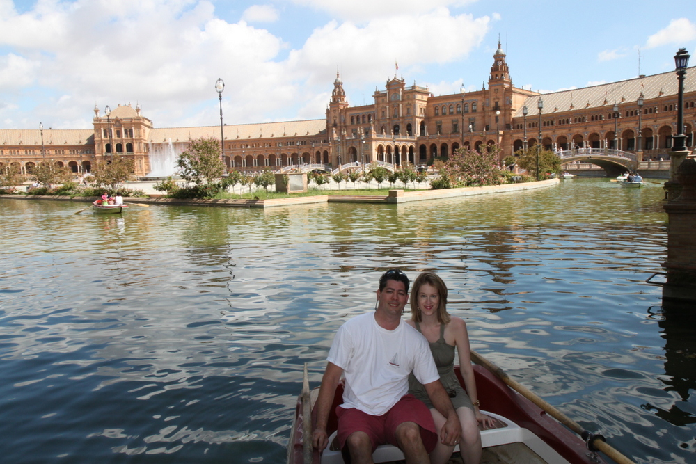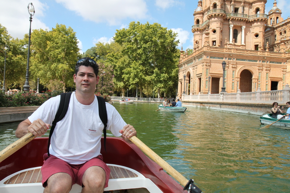 We walked around and marveled at the architecture and gorgeous ceramic balustrades. We loved the little moat that goes around the building and saw that you could rent row boats and couldn’t wait to do it. It felt little Spanish Venice with the arched bridges.