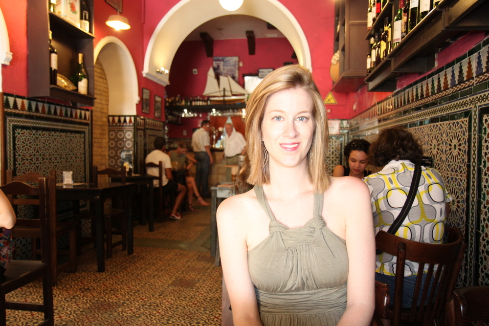 After lunch, we noticed that everyone seemed to be having a grand time at the next door bar, so I thought we should check it out. It was very small and clearly only inhabited by locals. I almost felt like we were intruding on a private party, except that everyone was friendly. We ordered a drink and sat there for about five minutes and then suddenly someone whips out a guitar and starts playing. Then, someone starts singing and then two people get up and dance. I thought it was the coolest thing ever — a spontaneous outburst of flamenco. I was overjoyed that I decided to duck in here. I was blown away at how this just seredipitously occured and at how talented these bar patrons were. What is this? The Spanish version of a flash mob? Here’s the video, see for yourself: