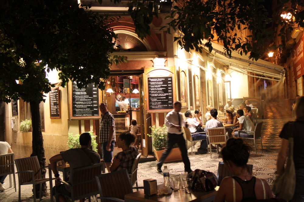 We just picked a random place to have dinner and this place looked good. One really cool thing that all of the places in Sevilla (and other cities) had was cold mist at their outdoor tables. You can see it on on the right below. What a brilliant idea!