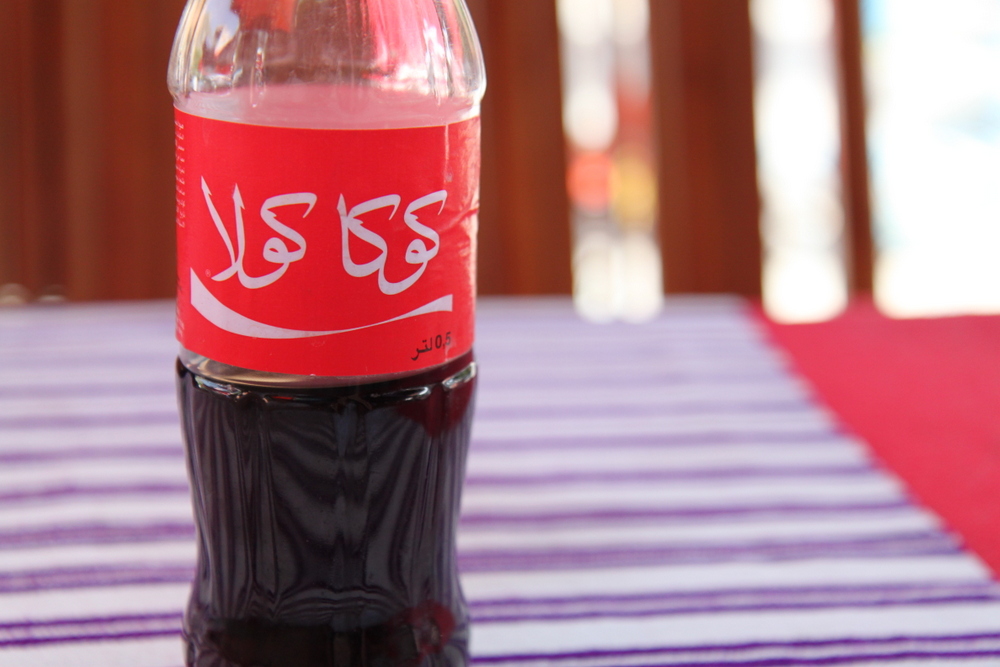 We sat down at a cafe in the main plaza to rest and have a drink. I decided to try the mint tea, which is the most common beverage here. And, Erick got a Coke (with the label in Arabic!) My mint tea came and I picked up the glass and immediately recoiled because it was like 1000 degrees. Serving hot drinks in glassware in the smartest in my opinion. I wanted to love it…I love mint…but it was way too sweet for me, which is typical of how they serve it.